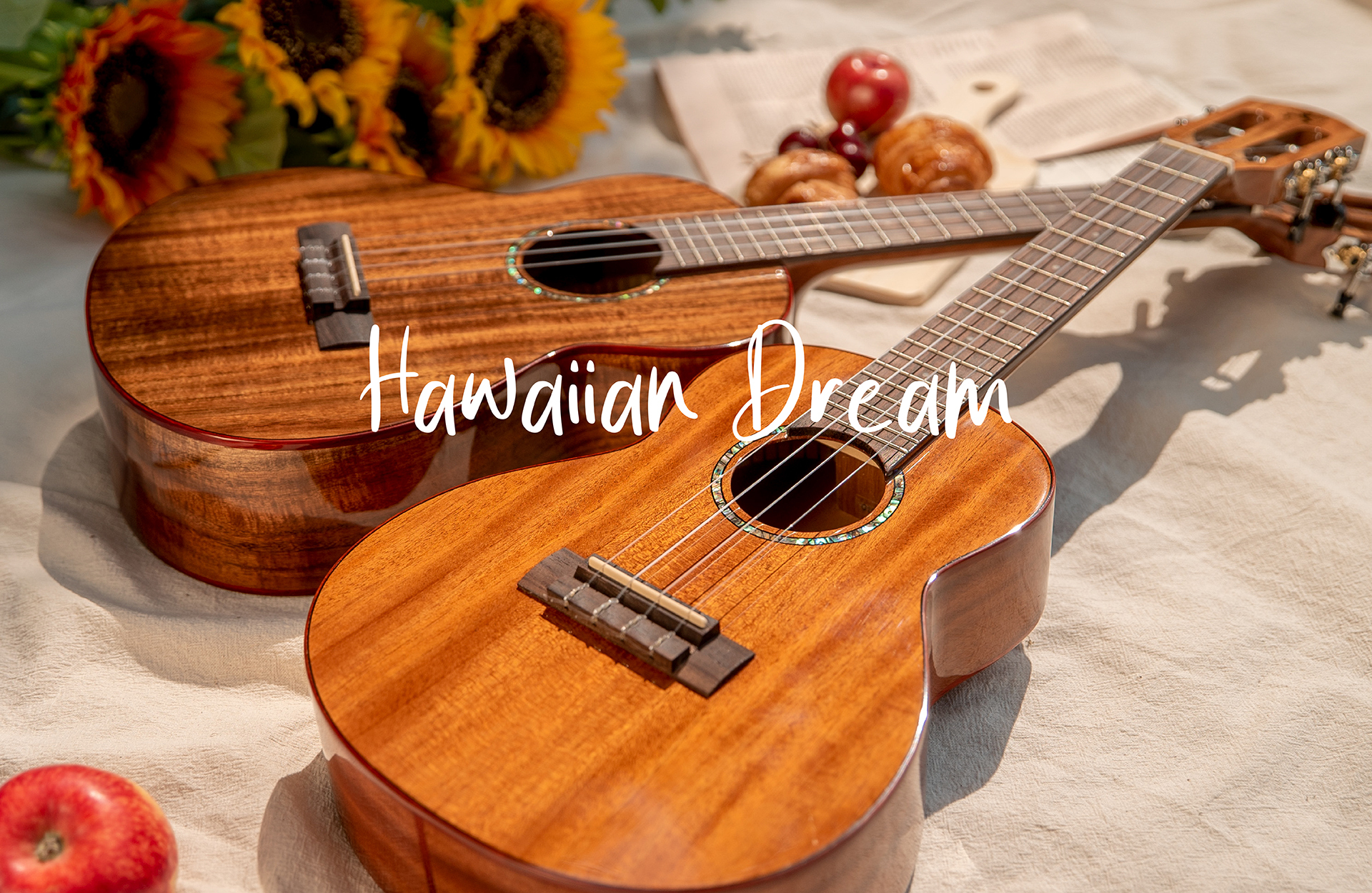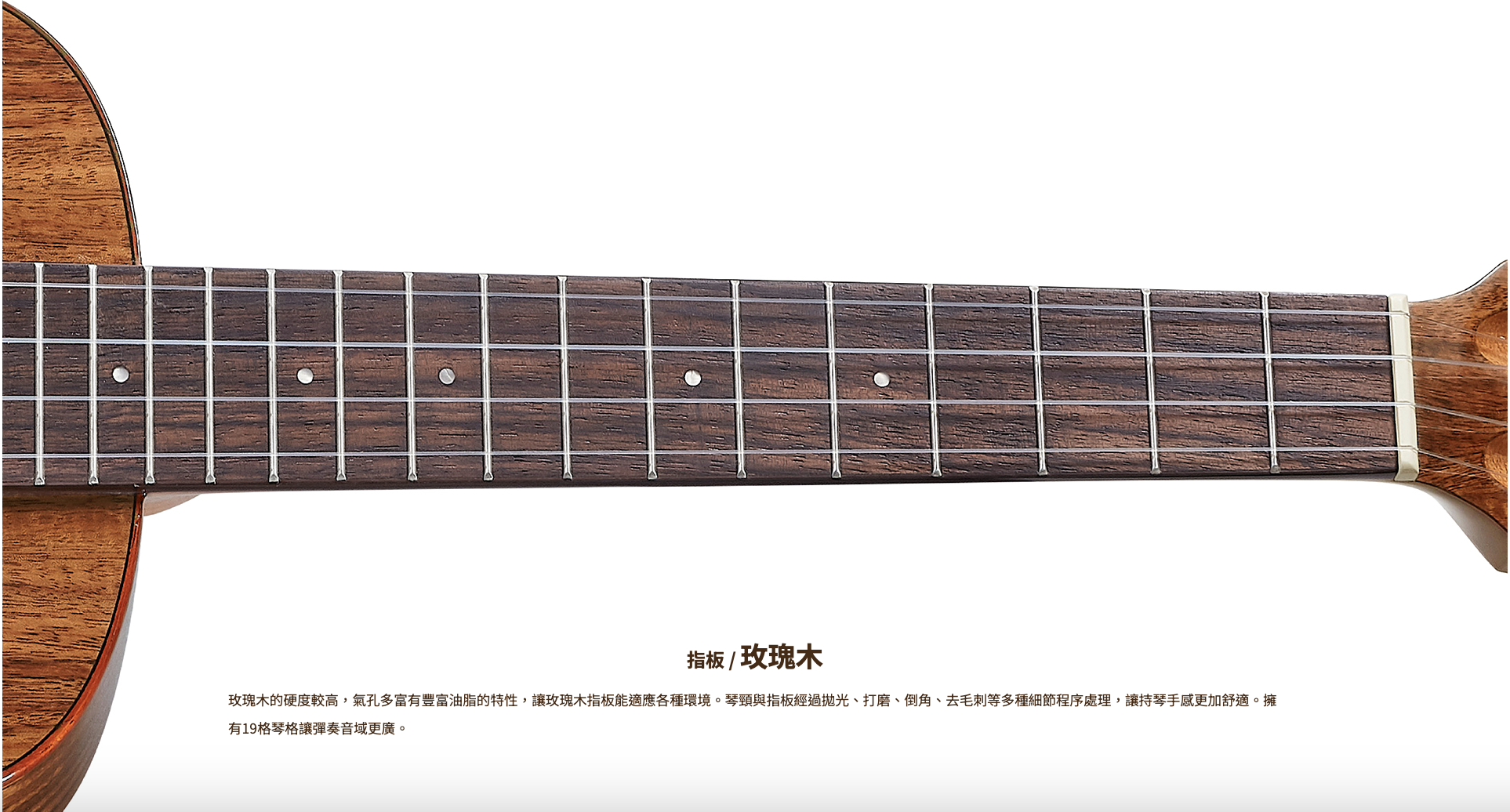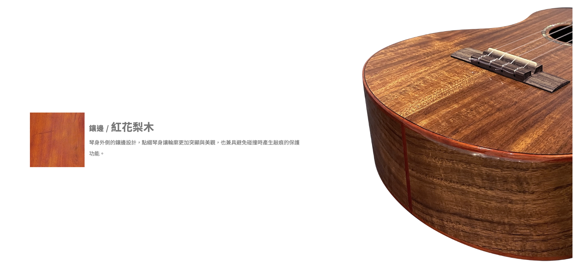 夏威夷夢全單系列 AC60 / AT60 台灣相思木擁有豐富多變的木紋,質地硬密度較大,高頻明亮清脆、中頻渾厚飽滿,音色甜美且具穿透力。屬於「開聲」較慢的木材。