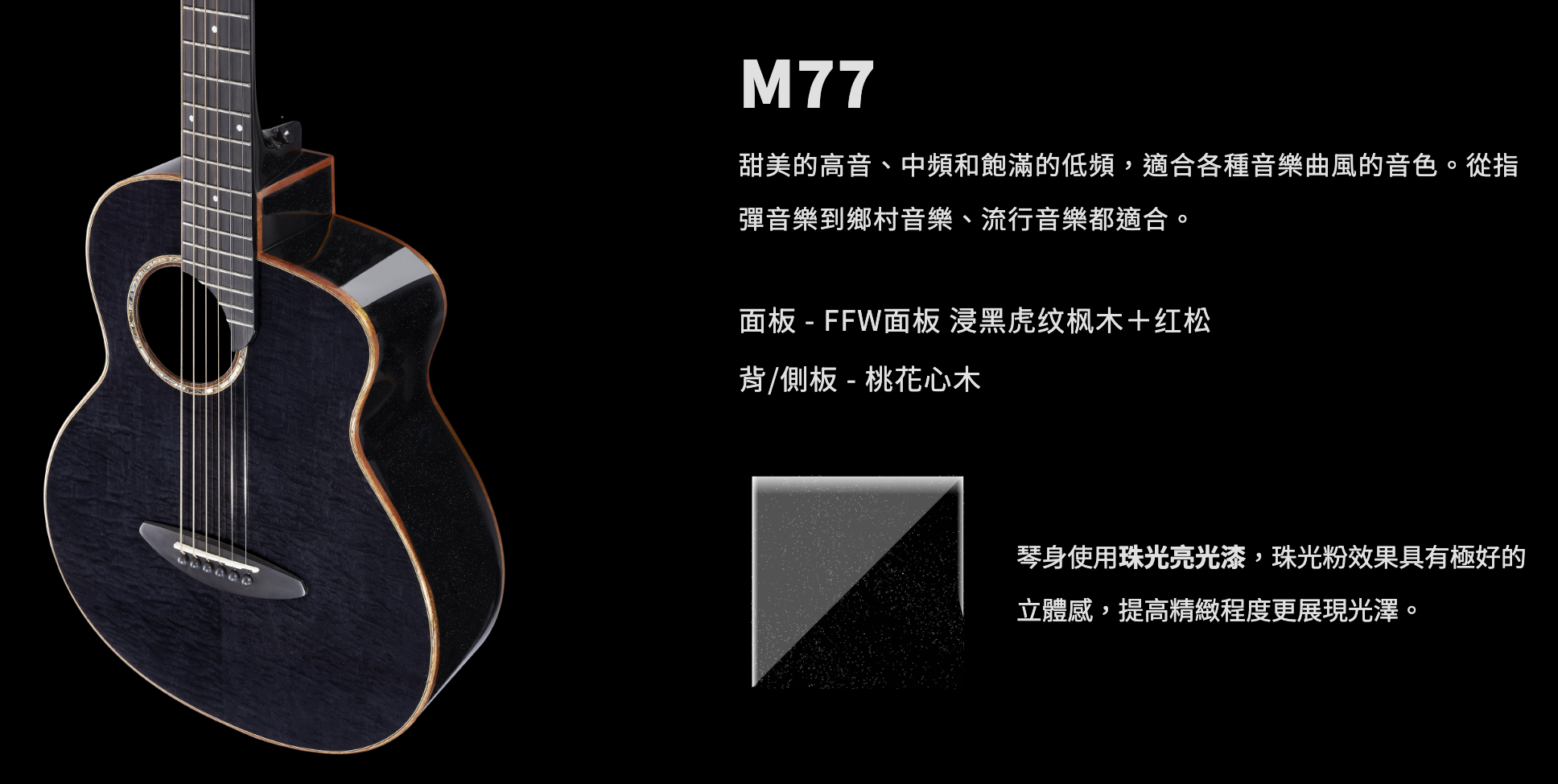 琴身外側則以桃花心木與黑白線做鑲嵌,兼具美觀及保護的功能。