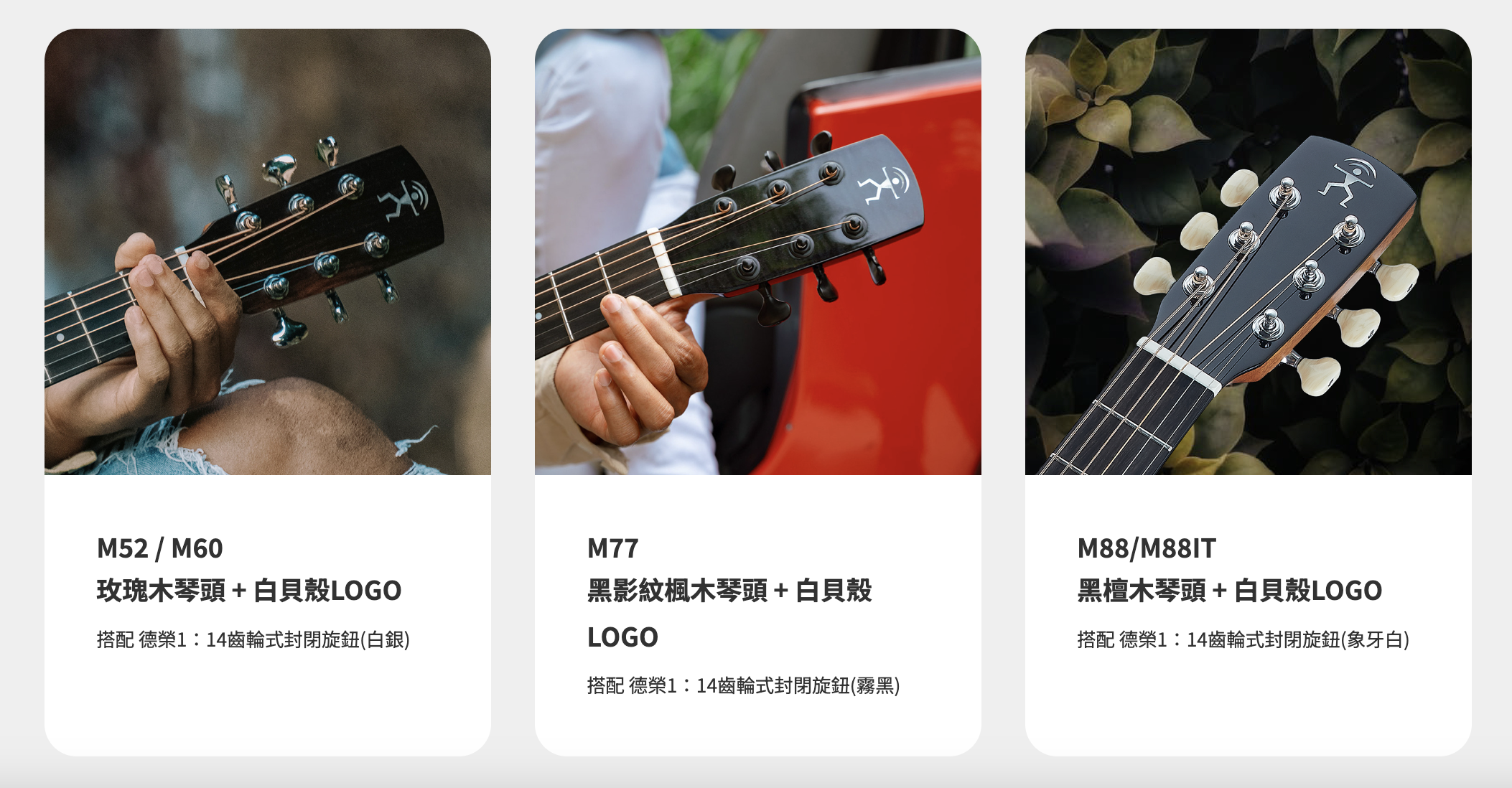 以閃閃發光的綠貝殼為主在外加上木頭細線,增加音孔飾圈設計層次。最內圈的玫瑰木為音孔做加強作用。
