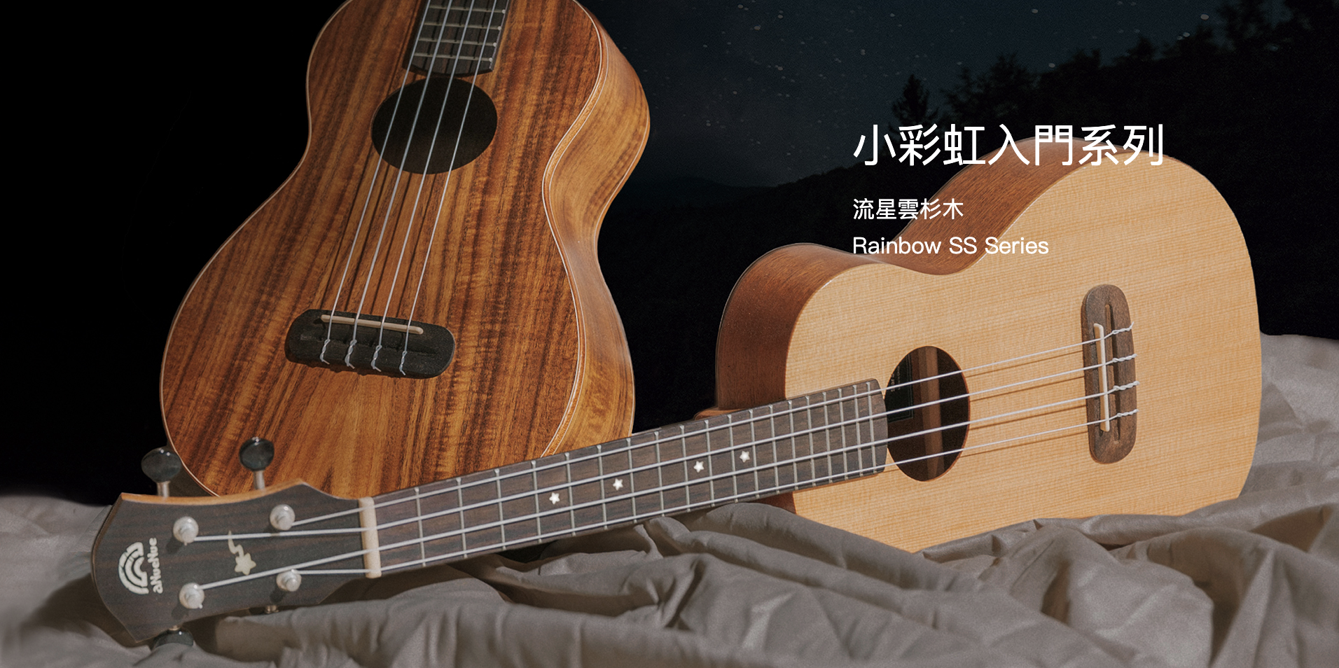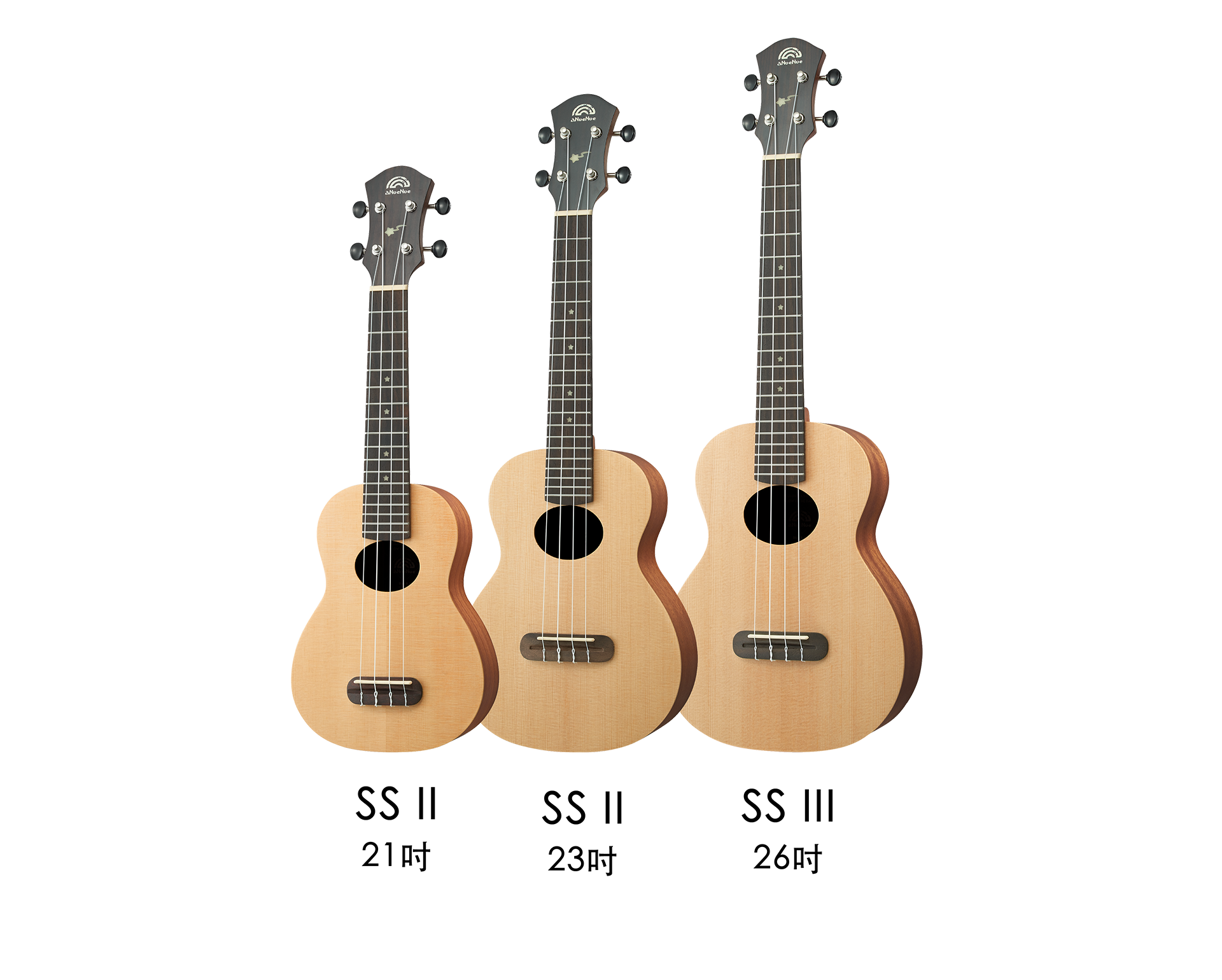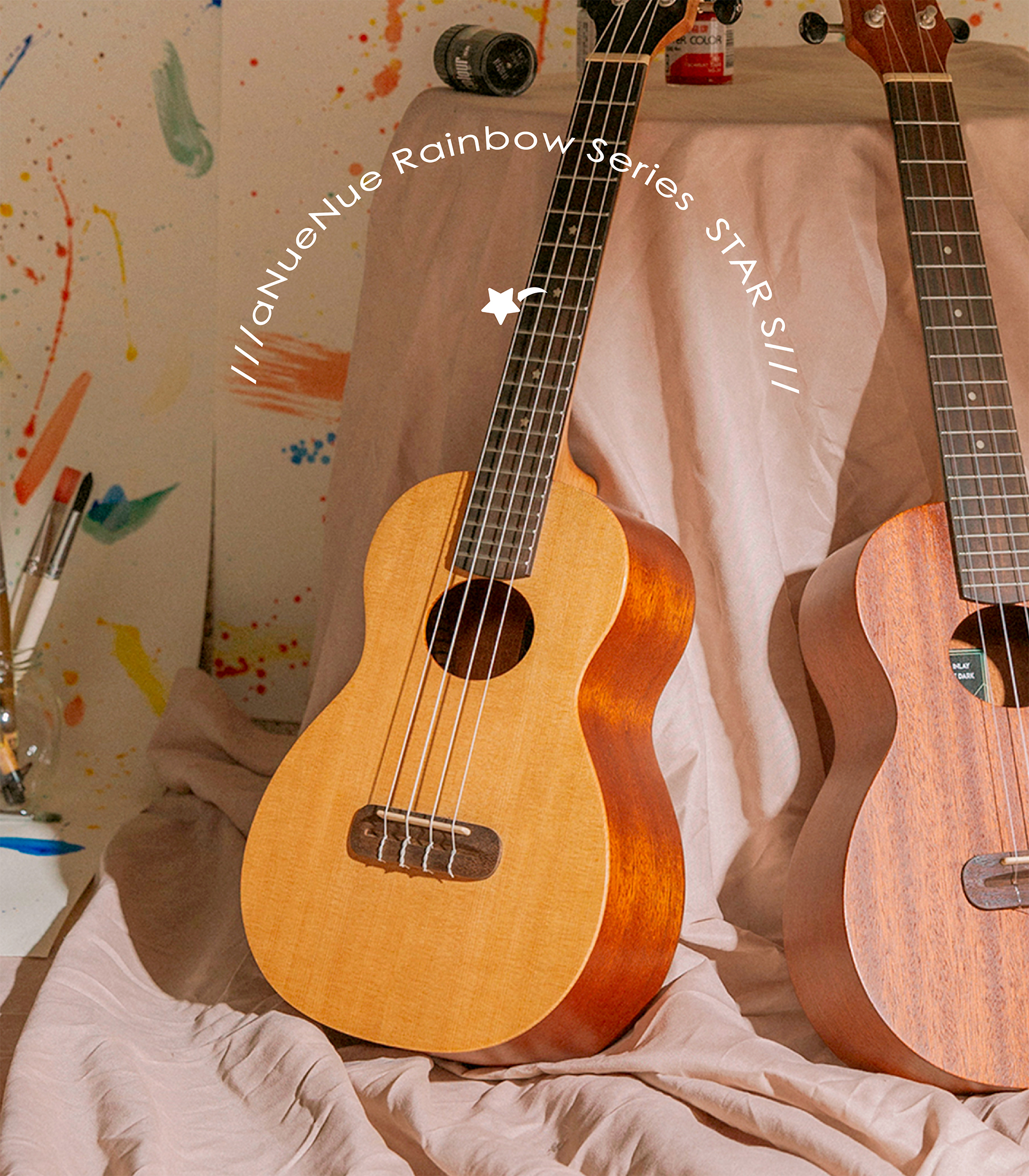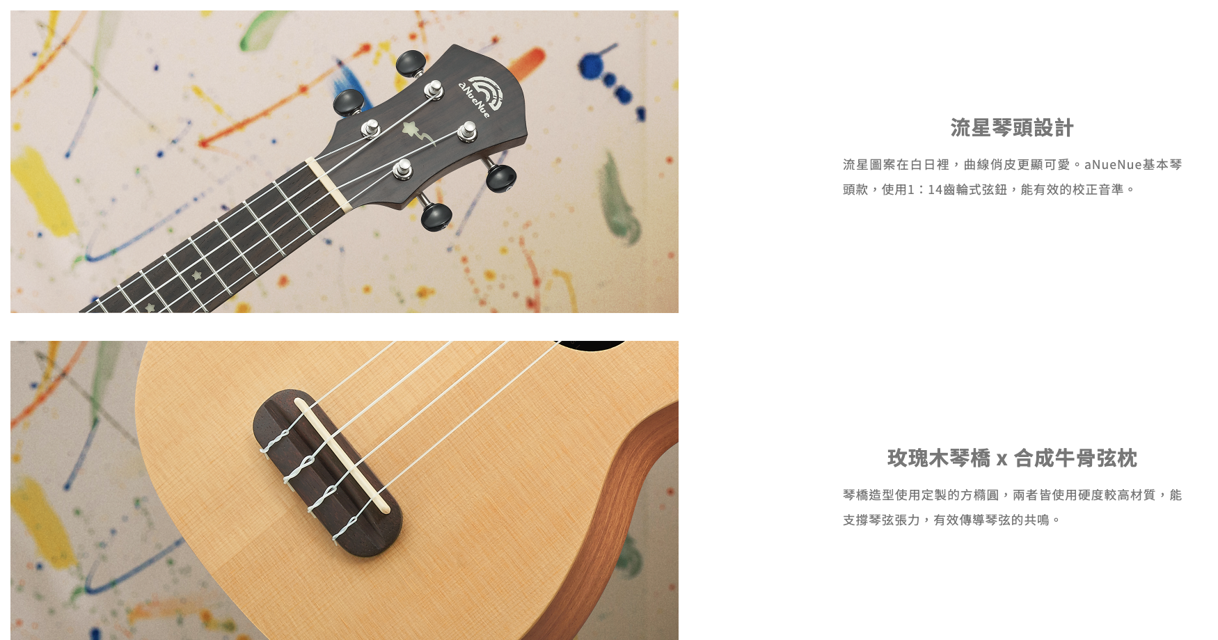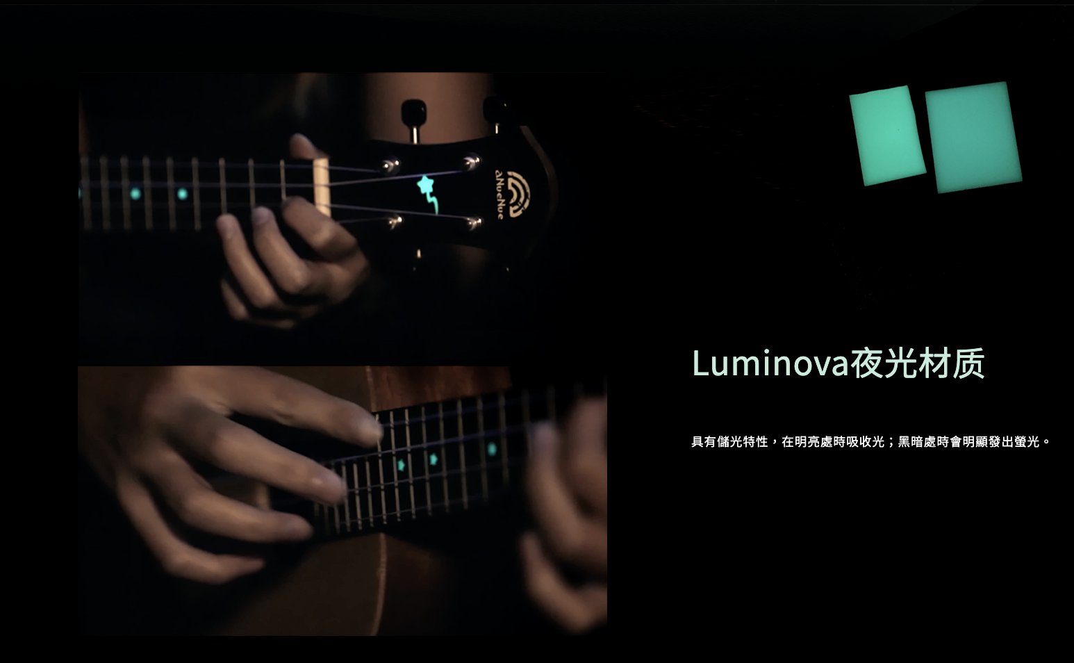 aNueNue於2017推出的烏克麗麗副品牌“Rainbow小彩虹”,設計上結合特殊“Luminova夜光材質”,顯現活力;尺寸、材質上提供多種選擇,舒適手感與親民的價格,適合初學朋友入手。