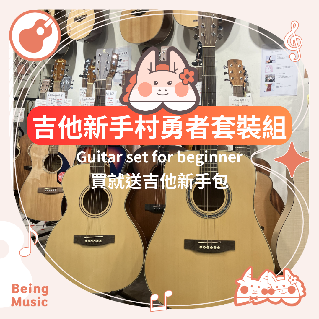 【新手村勇者套裝】用最實惠的價錢買到一把木吉他加上全套配件,吉他袋、CAPO、調音器、pick、背帶,通通都在裡面!存在音樂兔比王國幫您精選品質讚讚的新手套裝,讓您不用再煩惱。